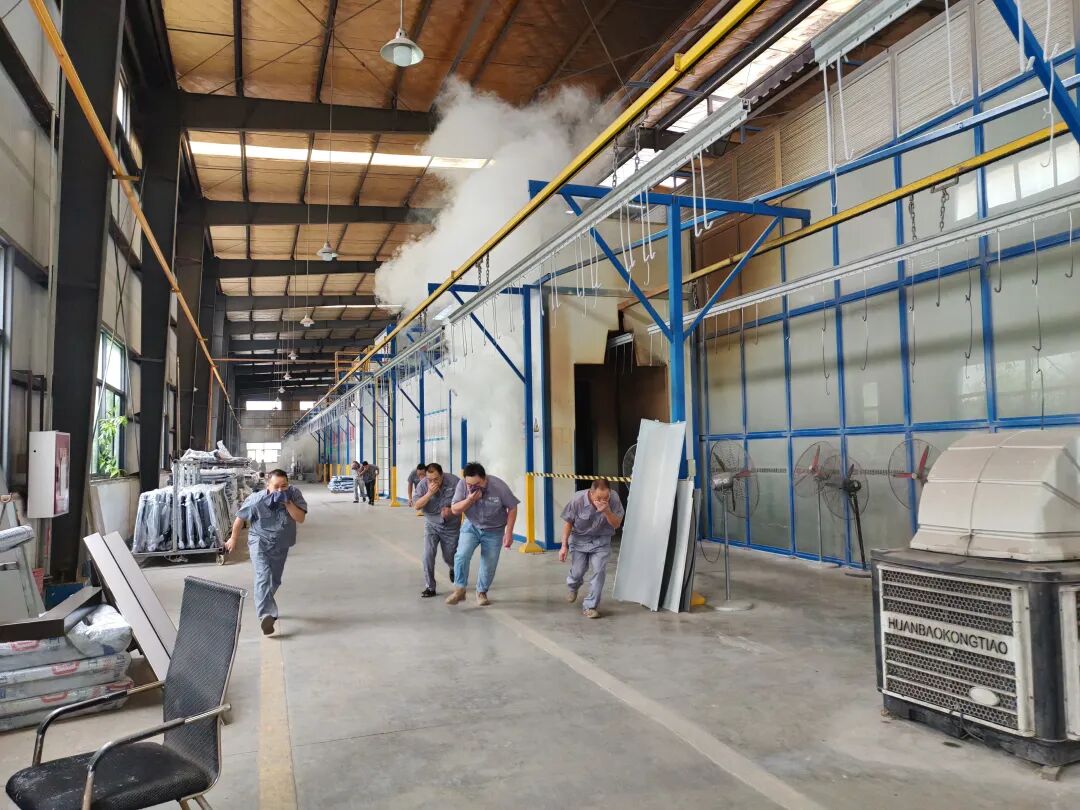 演练分为应急逃生和消防救援演练两个部分。在应急逃生演练中,行政部负责投放发烟器,模拟火灾场景,触发火警警报,随着紧急疏散的哨音的响起,员工们按照预定疏散路线有序撤离,在各班组长的带领下,所有员工使用湿毛巾捂住口鼻,采取曲身的姿势向各紧急出口有序撤离,以防止吸入有毒烟雾和拥挤踩踏。